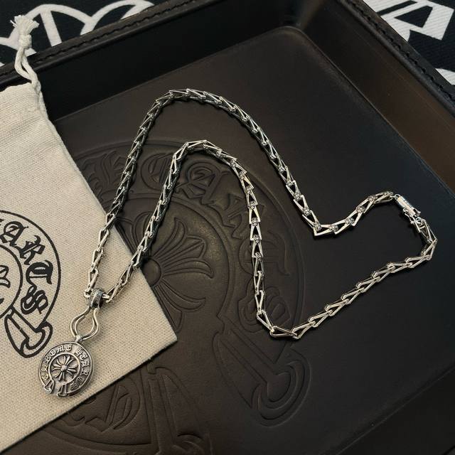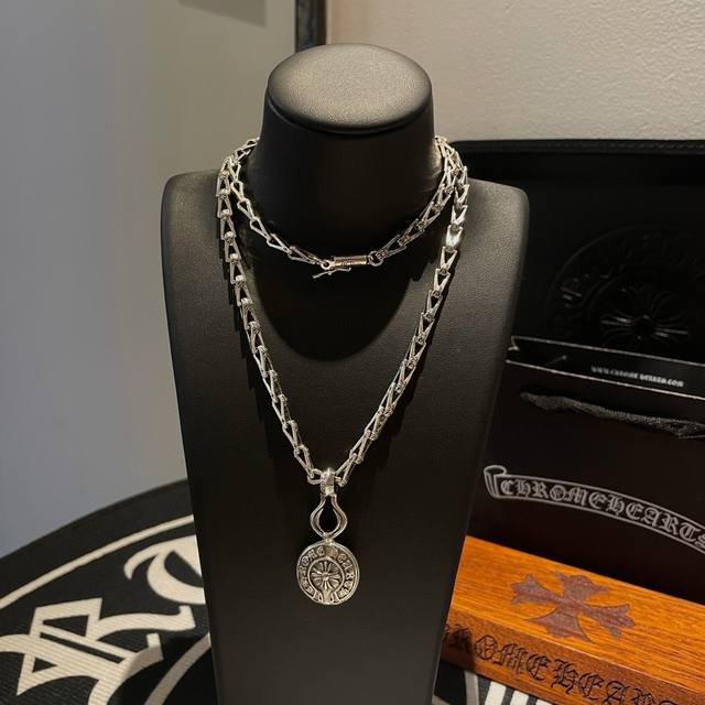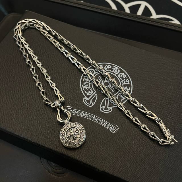 New counter quality Chrome Hearts classic retro necklace, double-sided horseshoe print pendant with concave and convex shapes and different patterns and design styles, showing a unique cross and scout flower is the symbol of Chrome Hearts, so it is more enduring. Authentic Chrome Hearts is different from ordinary light versions on the market. The quality is compared with the version. Look at the printing details and the degree of vintage gray oxygen. Seiko version! ! ! Purely handmade ~ authentic mold opening, trendy and fashionable, must-have for men and women, can be worn by couples, original official website rock punk Thai silver style, retro elements, trendy and versatile!