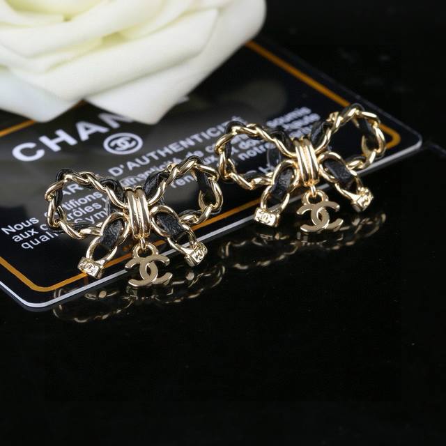 Chanel New Bow Earrings, made of lambskin. Every detail is exquisitely crafted. This design is absolutely gorgeous and incredibly beautiful. A must-have for any sophisticated young lady!