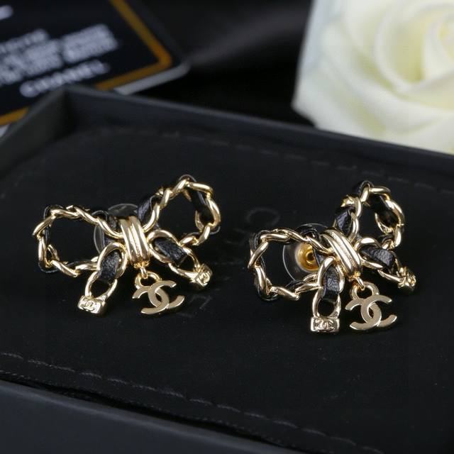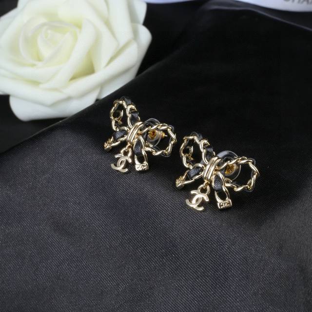 Chanel New Bow Earrings, made of lambskin. Every detail is exquisitely crafted.