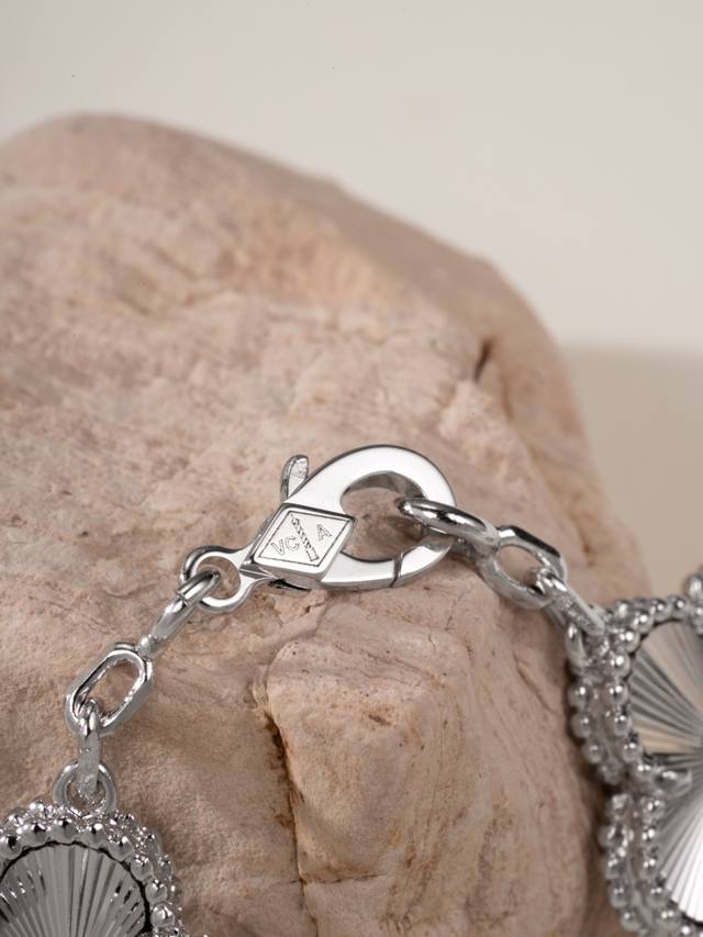 bracelet has a complex design with the clasp attached to the chain. Its drawback is that it is not adjustable; the spacing between each pattern is fixed, but this is a design requirement for authentic products. The best look is achieved on the wrist.