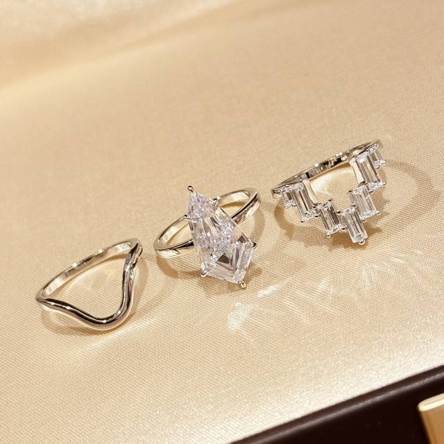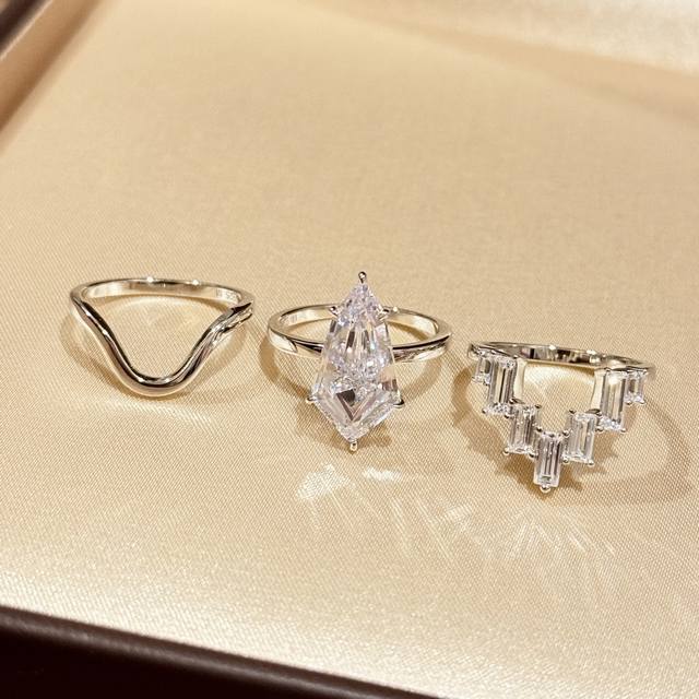 A4021 New High-End Jewelry Special-Shaped Diamond 3-In-1 Stacking Ring Top Dazzling Jewelry Series Will Create The Most Charming Personality Style High-End 925 Sterling Silver Inlay Material Craftsmanship 18K Gold Plated Gorgeous And Elegant All-Match Classic Electroplated Thick Gold Open No Code 3-In-1 Sterling Silver Ring Set