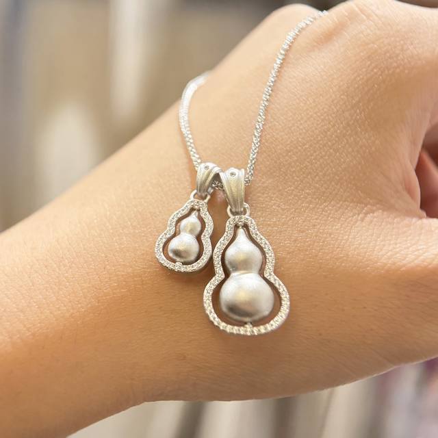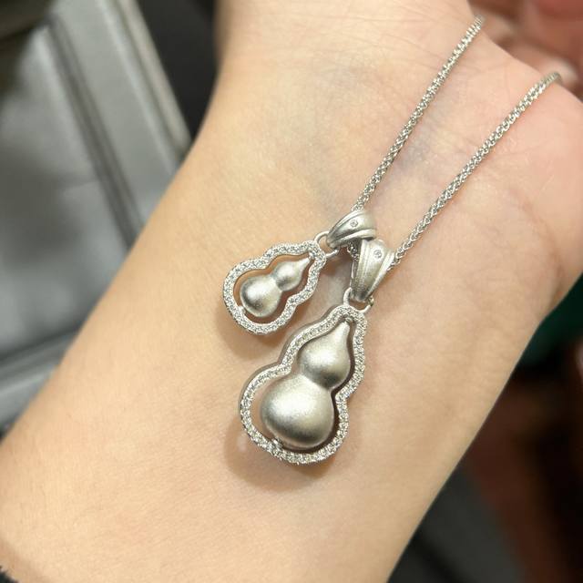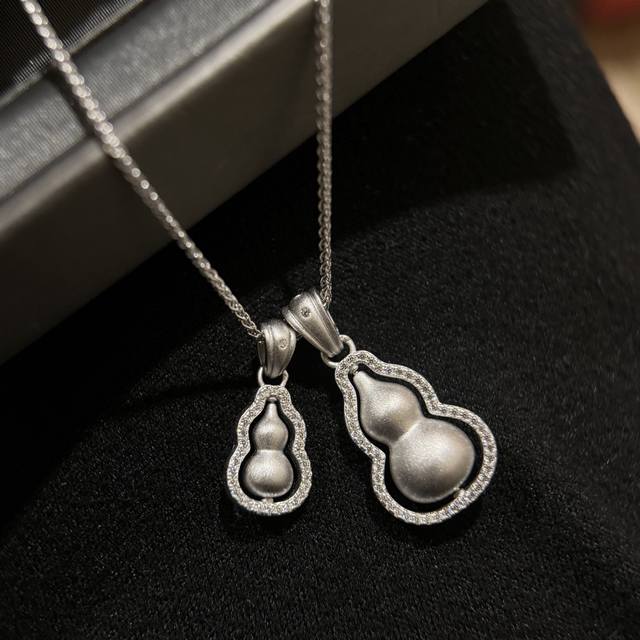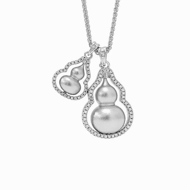 a5037 Hottest Frosted Double Gourd Necklace. Gourd Has Auspicious Meaning Since Ancient Times. High-End 925 Silver, Inlaid With 5A High-Carbon Diamonds, Modify The Face Shape, Very Elegant, Highly Recommended, Full Of Texture, Detachable, N Ways To Wear, Thick Gold-Plated Sterling Silver Necklace