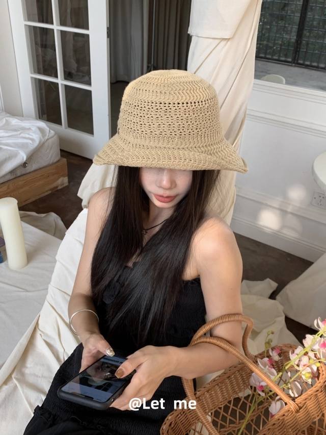 / Celine Japanese Solid Color Knitted Hollow Fisherman Hat Female Spring And Summe