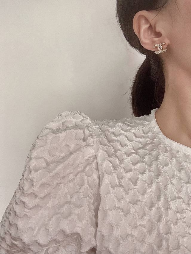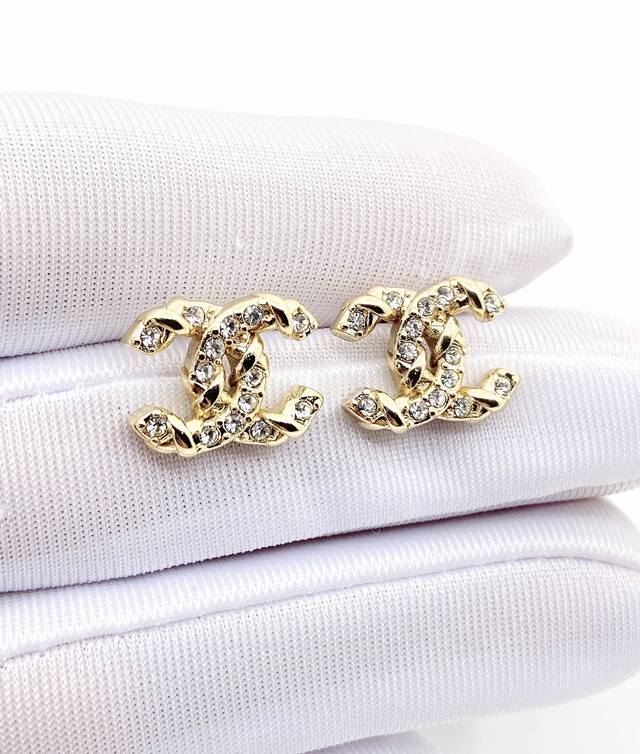 chanel Latest Model Full Diamond Cc Earrings Consistent With Z Batch Brass Material