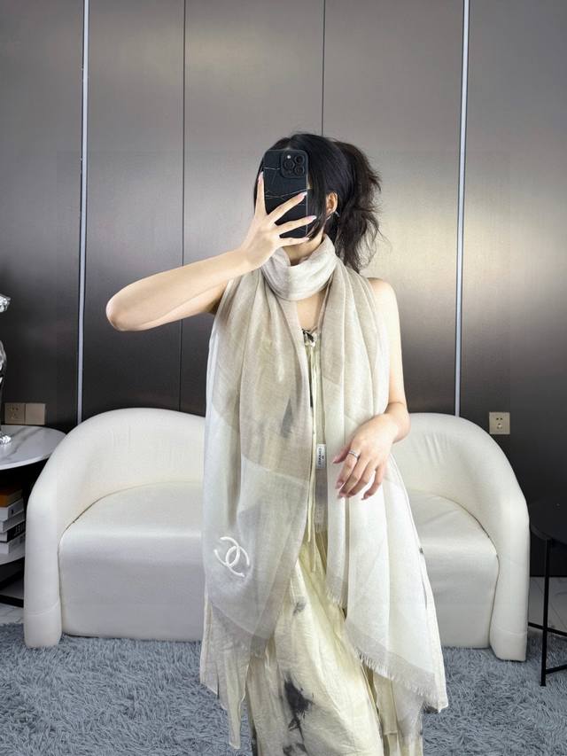 Has A Twill Texture. The Glossiness Of The Yarn Perfectly Presents This Texture. It Is Beautiful To The Extreme. It Is Decorated With Sequins. The Designer 's Mind Is Really Delicate To The Extreme . The Color Scheme Is Simple And Atmospheric. The Middle Line Is Not Printed And Dyed. It Is Very Thoughtful To Weave The Cashmere Sequin Yarn On The Scarf. The Effect Is Super Beautiful. The 100* Size Cashmere Long Scarf Is Full Of Aura No Matter How You Wear It. The Fairies Of Chanel~ Wear A Single Color
