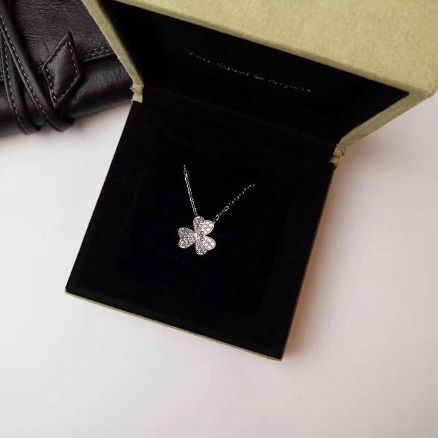 Classic Charm Vca Frivole Series Four-Leaf Clover Full Diamond Three-Flower Necklace Classic And Versatile Sweet Flowers High-End Micro-Inlay Craftsmanship Thick Gold Electroplating 18K Gold Version Craftsmanship With Van Cleef & Arpels Special Diamond Buckle Noble And Elegant
