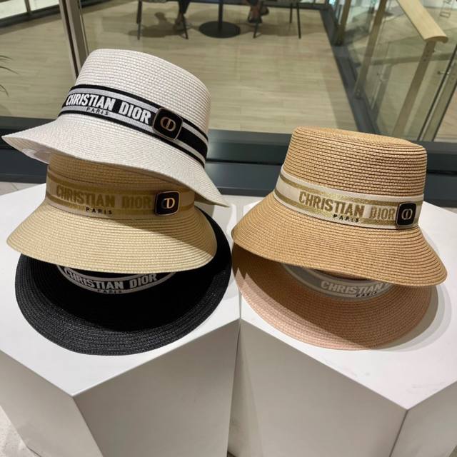 dior Dior's New Bucket Straw Sun Hat Basin Hat Beach Style Simple And Generous All-Match Single Product Street First Choice New Hat Shape Super Beautiful New Product On The Shelves