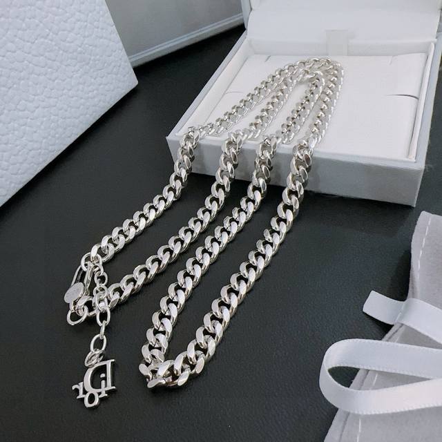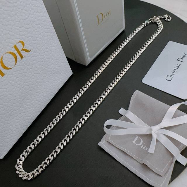 dior New Dior Necklace Original Goods Counter New Model Open Mold Retro Fashion Must-Have Men And Women Can Wear Couples Style Rock Punk Thai Silver Style Retro Elements Trendy Versatile Official Website Same Necklace Latest Chain Higher Grade Celebrity Classic Necklace Series Retro Silver Necklace