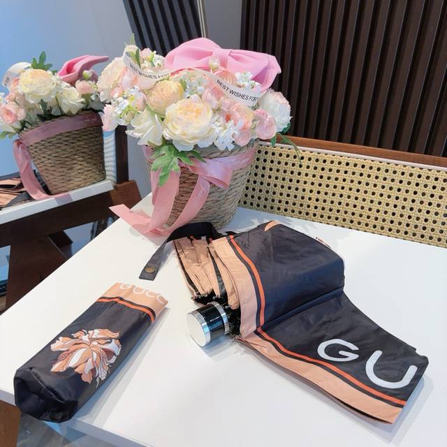 gucci Gucci's New 50% Off Hand-Opening Folding Umbrella Uses Taiwan Imported Uv Anti-Ultraviolet Umbrella Cloth Original Oem Quality