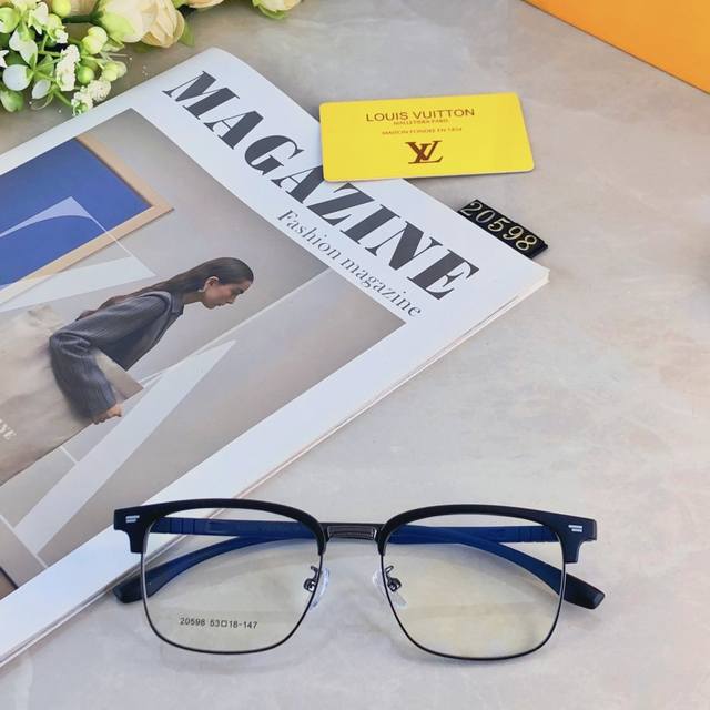 louis Vuitto*Ultra-Clear Half-Frame Myopia Glasses Frame For Gentle Men, Trendy And Handsome, Anti-Blue Light Ultra-Thin Lenses With Eyebrow Wire Frame, Business