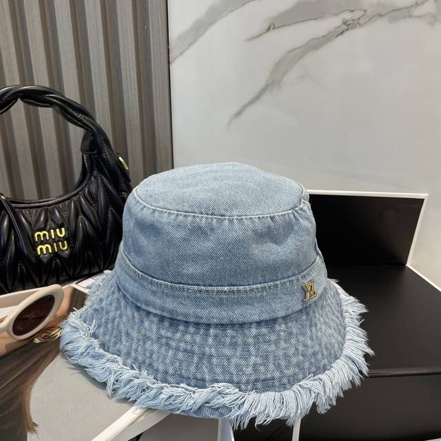 / louivuittonlv Louis Vuitton New Washed Denim Fisherman Hat Simple And Generou