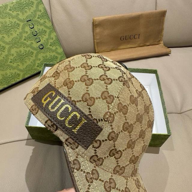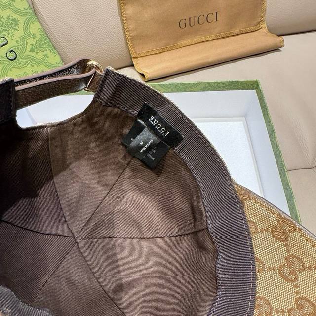 With Packaging Bag Gucci New Original Baseball Cap With Gold-Stamping Ribbon Counter Latest Model 1:1 Mold Customization Genuine Mold Original Canvas Material + First Layer Cowhide Original Quality Excellent Basic Head Circumference 56 Patch Adjustable