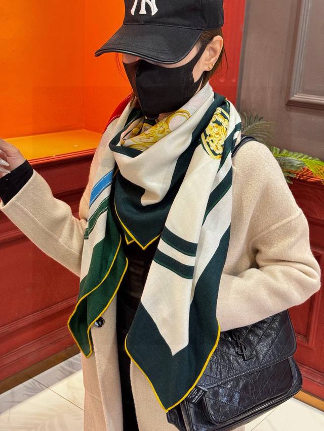 New Cashmere Model, Everyone Says It Looks Good. Recommended. Gorgeous Bridle, Double-Sided Same Color 140 Cashmere Square Scarf, Top Craftsmanship, Great Value, Herm