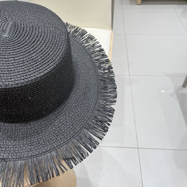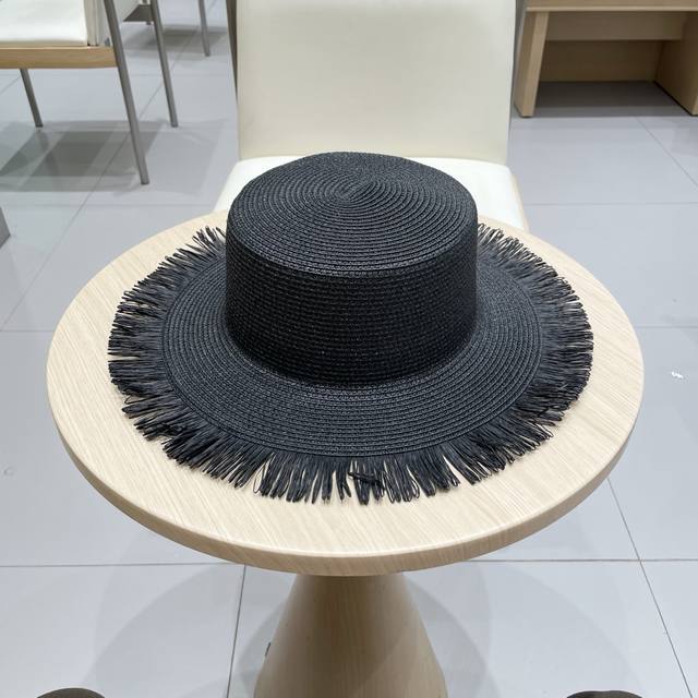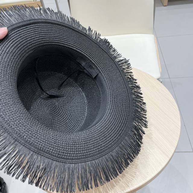 Prada 2025 New Flat Top Tassel Straw Hat Advanced Customization Stock Multi-Head Circumference 57Cm
