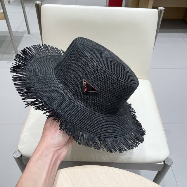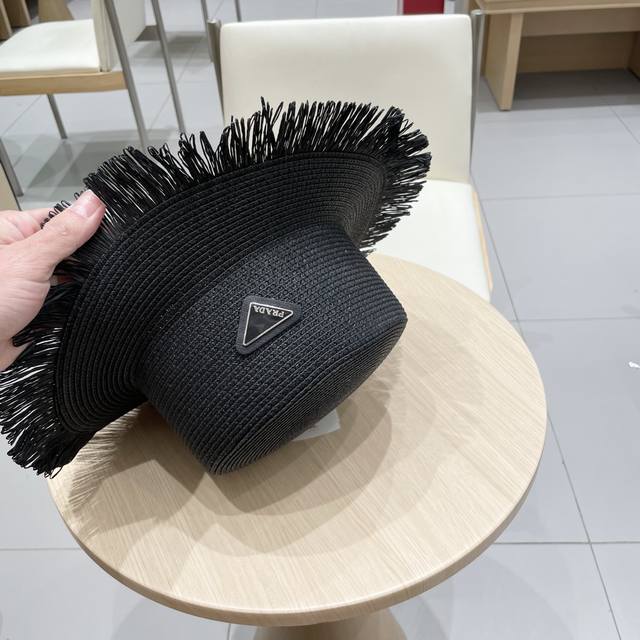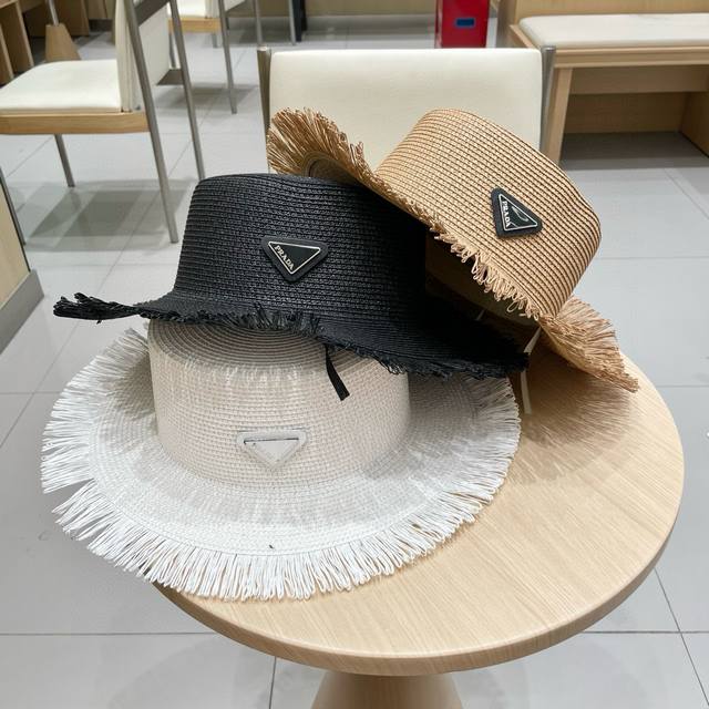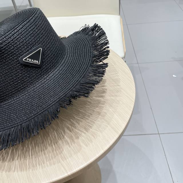 / Prada 2025 New Flat Top Tassel Straw Hat Advanced Customization Stock Multi-Head