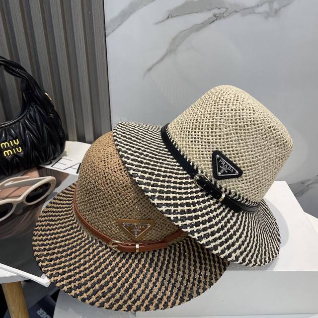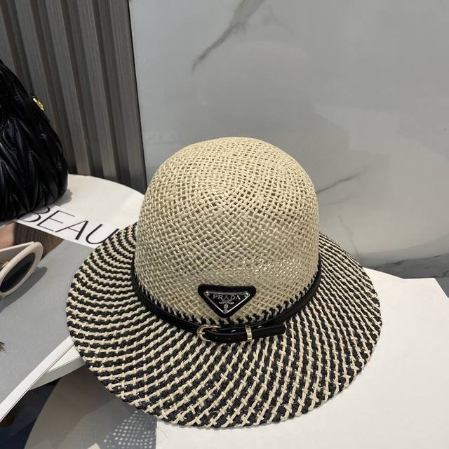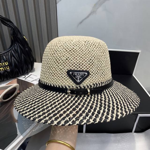 / prada Prada Straw Hat Lady Style Basin Hat Made Of High-Grade Fine Straw, Hig