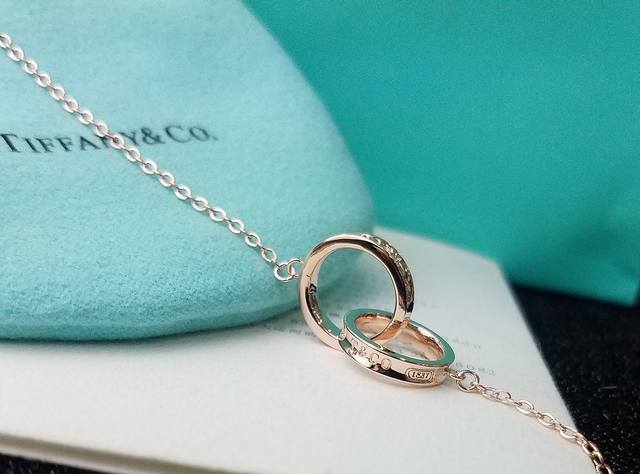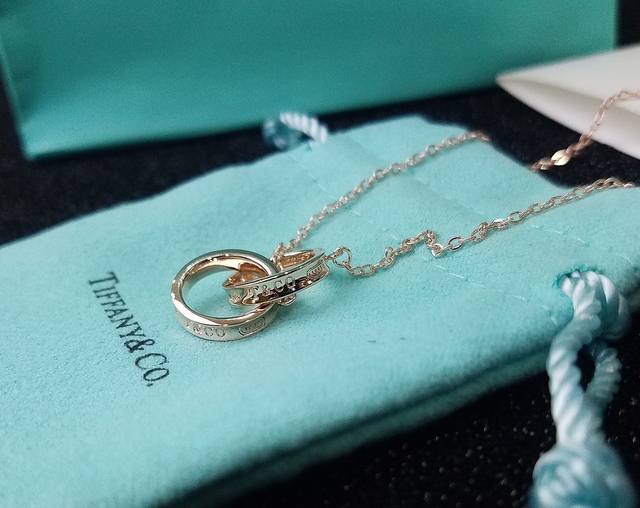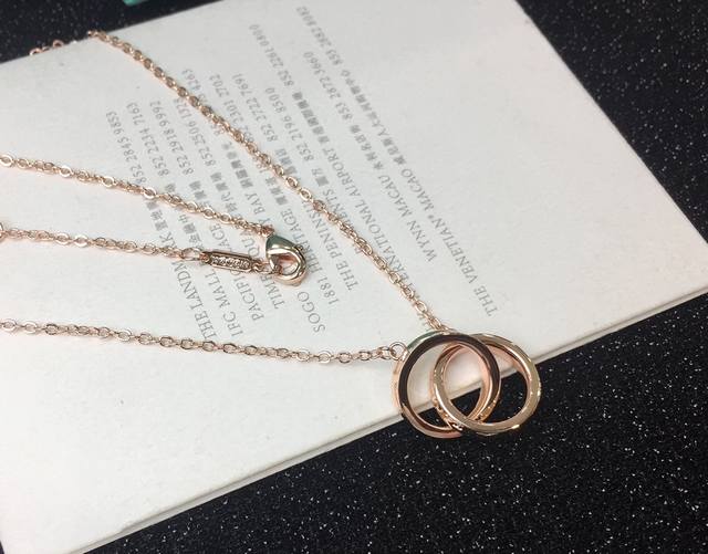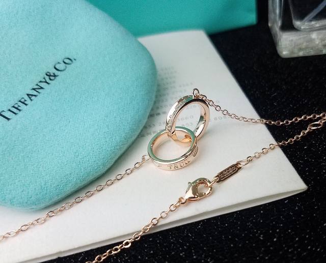 tiffany Classic 1837 Double Ring Necklace Double Ring Interlocking Design Implies Never Separation Popular Classic Model Original Mold High-End Sub-Gold Electroplating 18K Gold Craftsmanship Never Outdated Versatile Casual Style