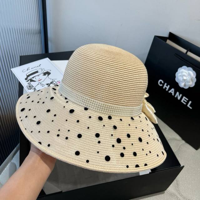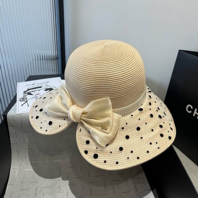 chanel French Retro Ruffled Strap Beach Hat For Women Summer Seaside Vacation