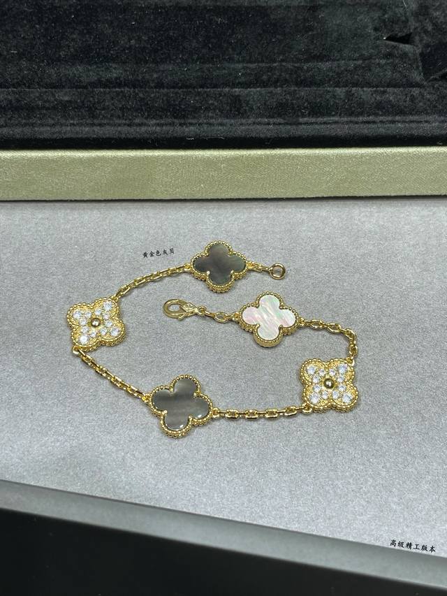 V gold material popular Vca natural gray mother-of-pearl interval diamond five-leaf clover bracelet, 50th anniversary commemorative counter 100,000 Hong Kong dollars: four-leaf clover gray-green abalone five-leaf bracelet natural abalone gray mother-of-pearl rose gold five-leaf bracelet Seiko electroplating 18K super beautiful self-retained model