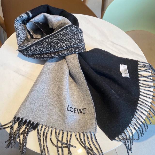Love double-sided scarf, medium weight double-sided wool and cashmere blend scarf. Full-coverage jacquard Anagram design . Tassel edges. Corner embroidery. Material: 90% wool, 10% cashmere. Size: 182*30cm (excluding tassels).
