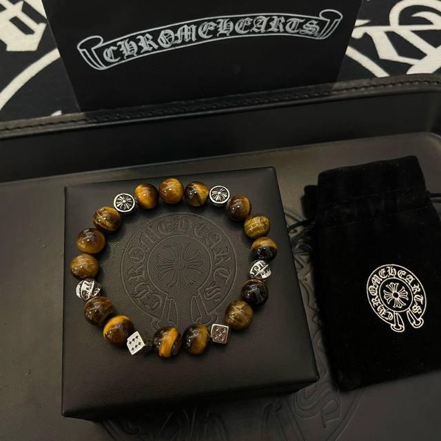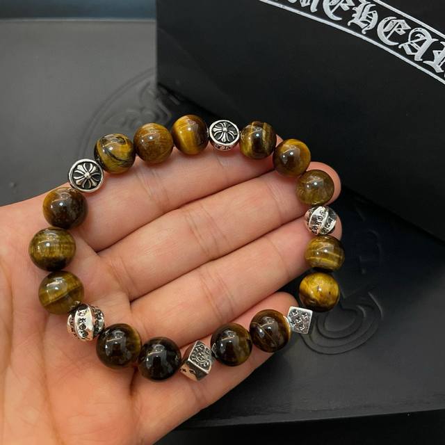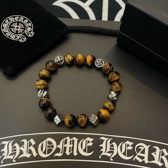 New boutique quality Chrome Hearts classic retro multi-element tiger's eye bracelet, popular on Kuaishou, Ins, and Xiaohongshu. The embossed design with different patterns presents a unique style. The cross and scout flower are Chrome Hearts' signature colors, making them timeless. Authentic Chrome Hearts replica, different from ordinary versions on the market. Quality is comparable to the original, judging by the details of the lettering, the vintage distressed finish, and the degree of gray oxide. Exquisite craftsmanship! DDD