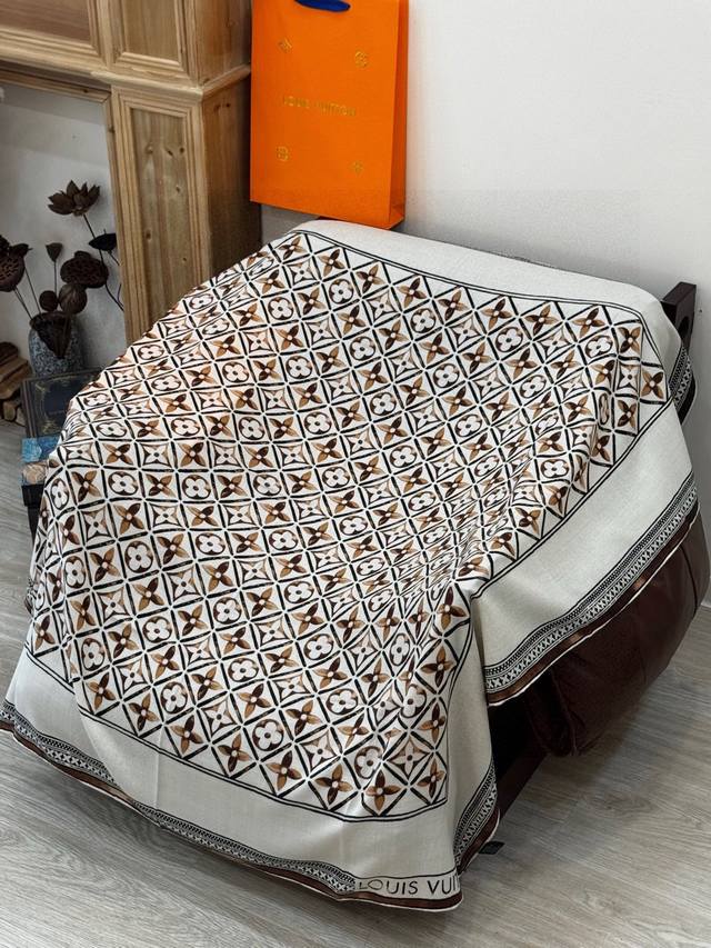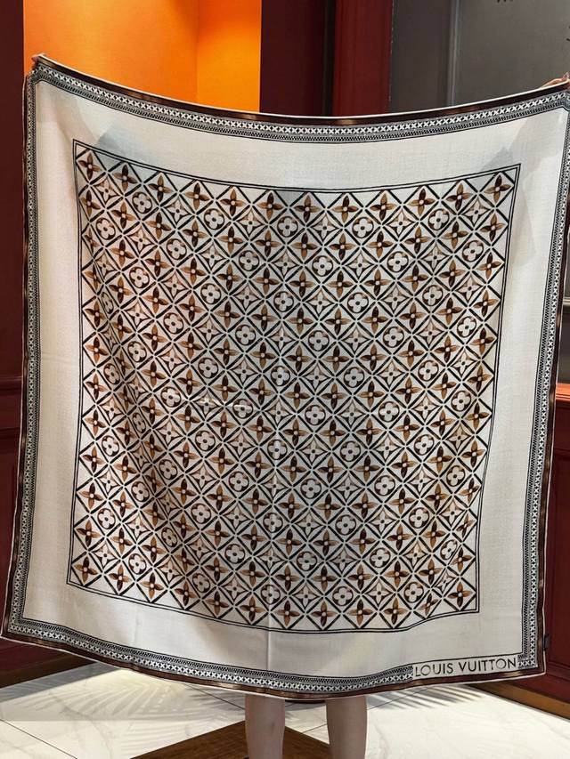 Premium Velvet Double-Sided Tonal Shawl DDD 30% Silk 70% Cashmere DDD 140*140 Square Scarf DDD This velvet square scarf pays homage to history with its artistic design inspired by late 19th-century advertising posters. Various colored trunks and travel stickers adorn the star-patterned background, showcasing the brand's attention to detail. The elegant design exudes sophistication. DDD