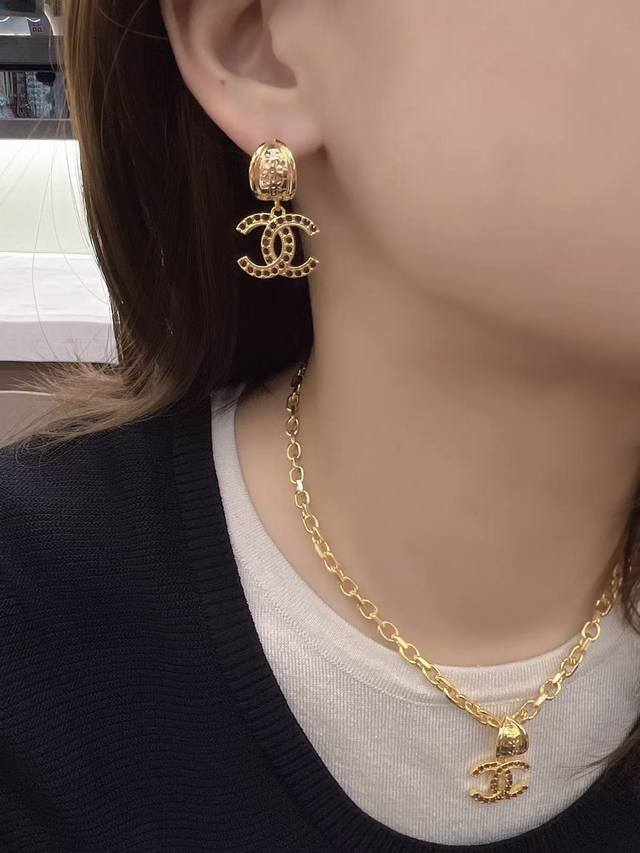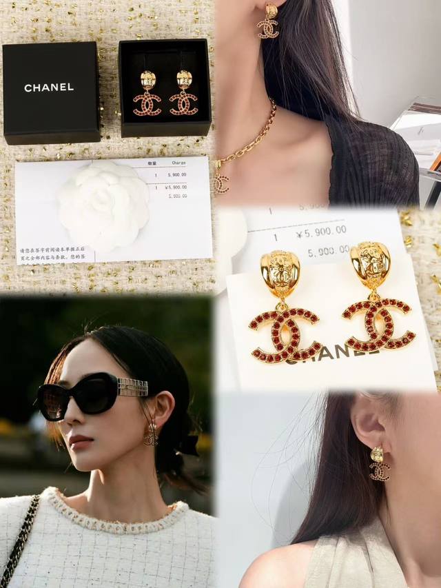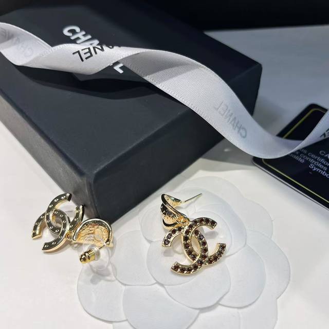 Today's New Arrival: Chanel Red-Brown Letter Earrings (Same Style as Janine Chang) - Hot Selling New Arrival! Chanel 25 Retro Red-Brown Rhinestone Double C Earrings. The red-brown rhinestones are set with gold double C designs, very retro, dazzling and eye-catching. They look expensive and have a vintage feel! Perfect for everyday wear or dates.