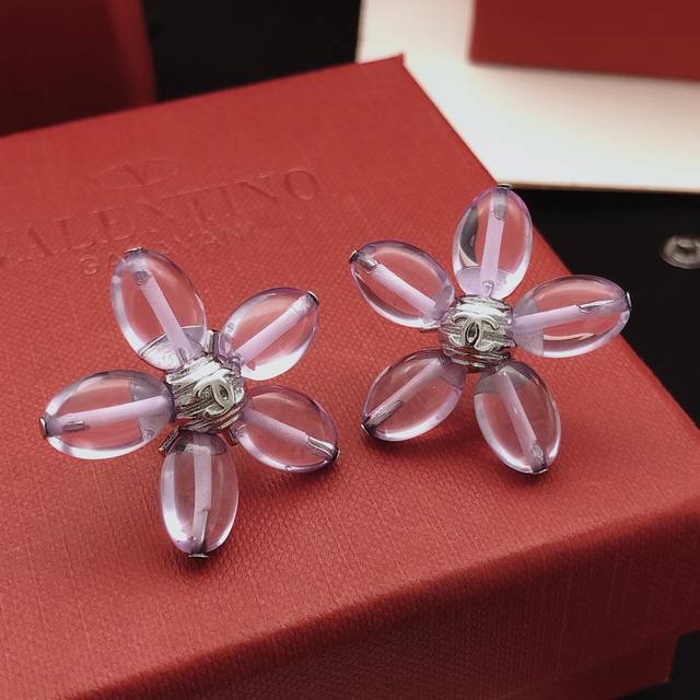 Ch*Nel's latest silver-purple flower earrings, identical to batch Z, made of brass.