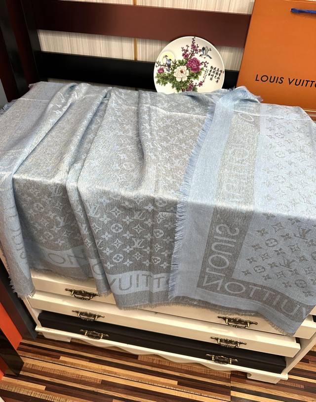 2610 Latest LV style, highly recommended! So beautiful, timeless, and worth the wait. A classic LV must-have. The most classic design reinterprets the Monogram pattern with a subtle jacquard weave. The soft and warm fabric provides a pleasant and comfortable feel. The exquisite and elegant fabric allows for effortless wear. The classic lettering is timeless. Size: 140X140, Material: Cashmere, Available in 3 colors.