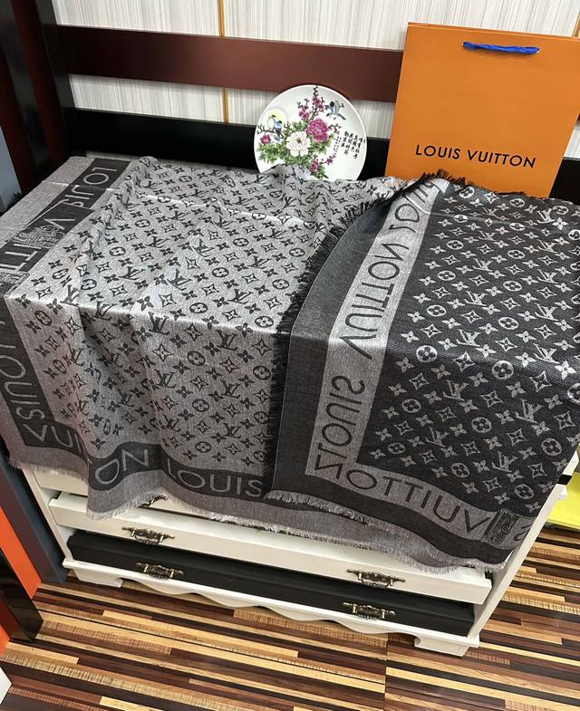 2610 Latest LV style, highly recommended! So beautiful, timeless, and worth the wait. A classic LV must-have. The most classic style reinterprets the Monogram pattern with a subtle jacquard weave. The soft and warm fabric provides a pleasant and comfortable feel. The exquisite and elegant fabric allows for effortless wear. The classic lettering is timeless. Size: 140X140, Material: Cashmere, 3 colors.