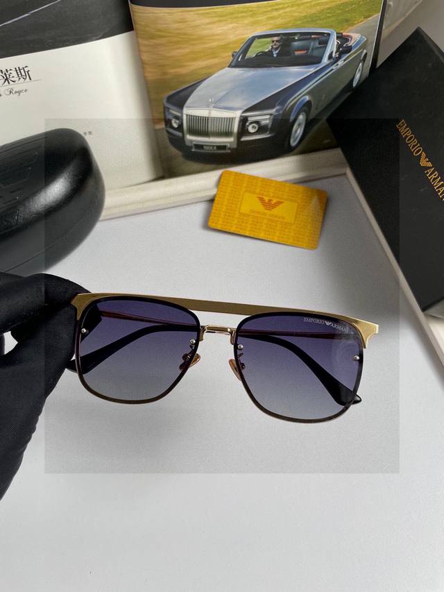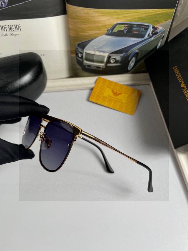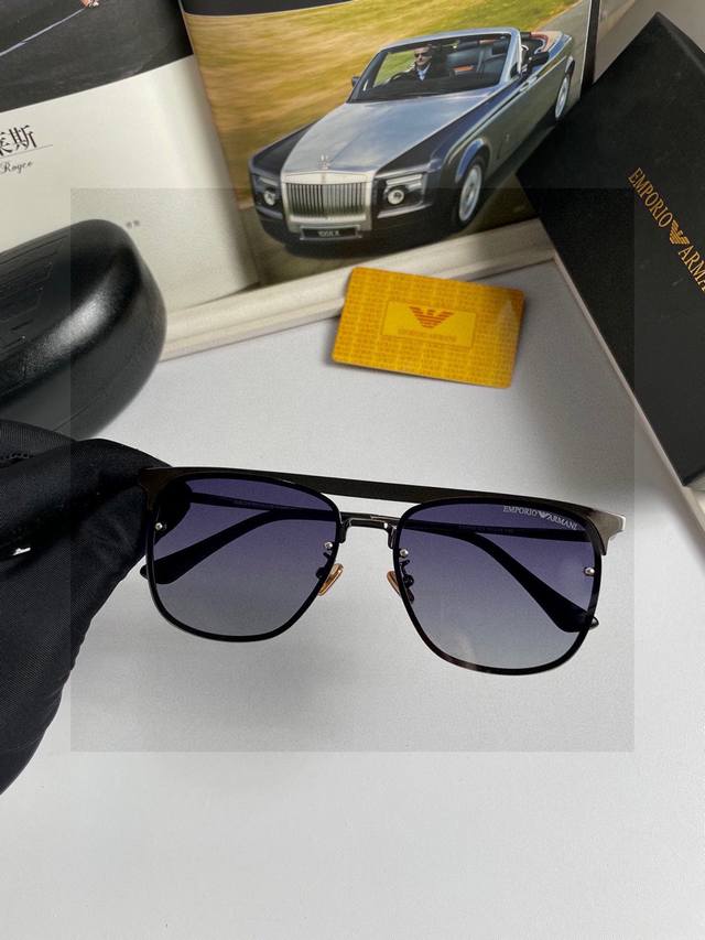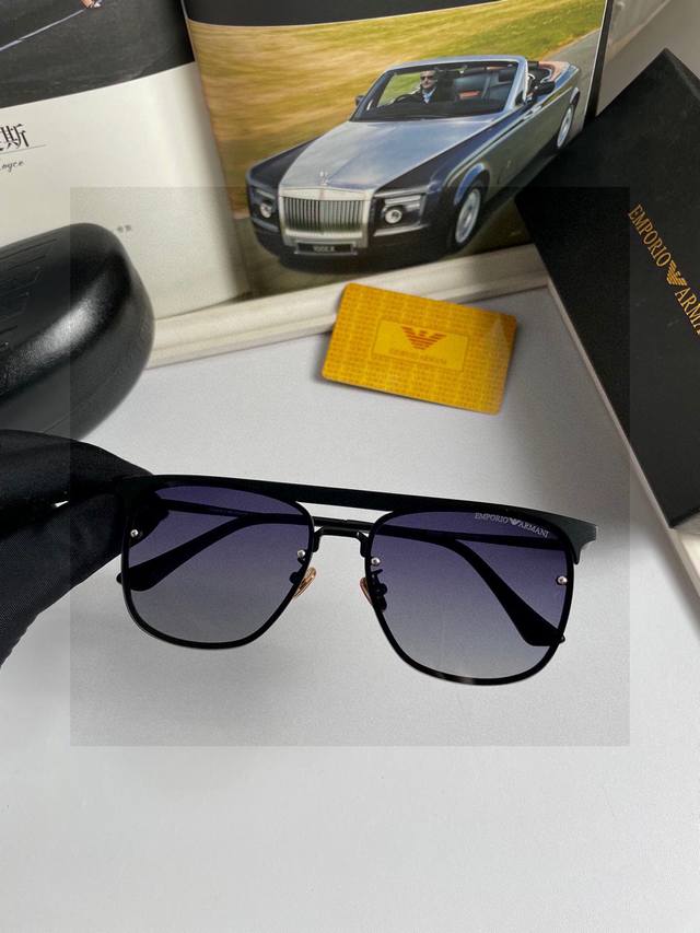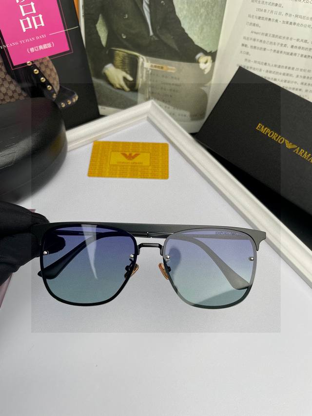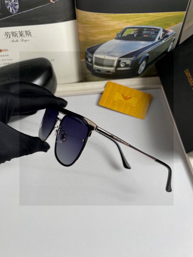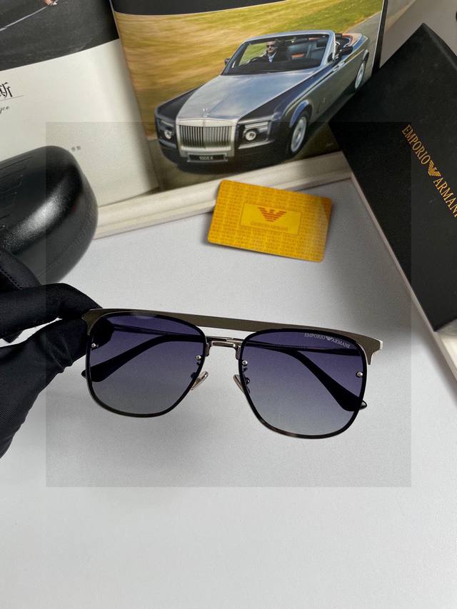 Armani original quality men's polarized sunglasses. Material: High-definition Polaroid polarized lenses, metal alloy temples with printed logo. The details reveal masterful handcrafted design, exquisite workmanship, and a high-end, sophisticated look, perfect for travel.