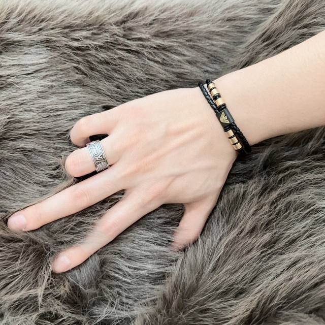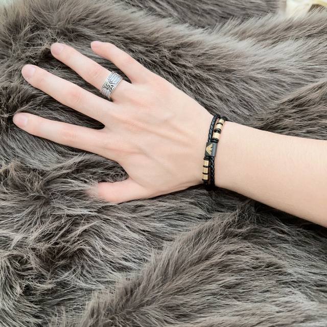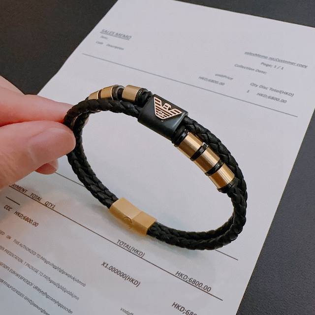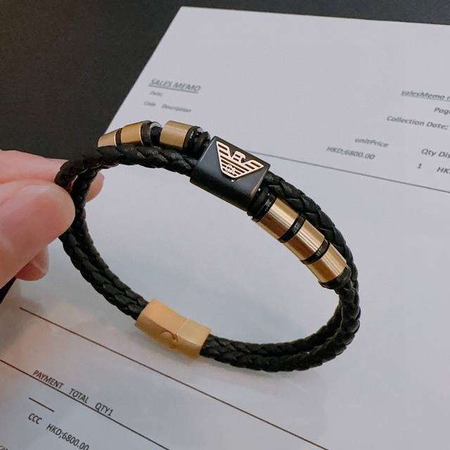 High-quality Armani cowhide bracelet, original product, new model from the counter, retro and fashionable, must-have for both men and women, suitable for couples, rock punk Thai silver style, retro elements, trendy and versatile, same cowhide bracelet from the official website, latest chain with higher grade, celebrity classic necklace series, retro