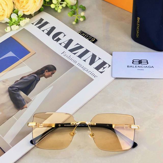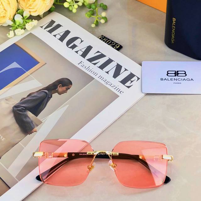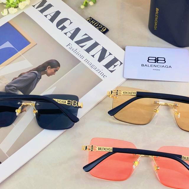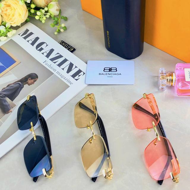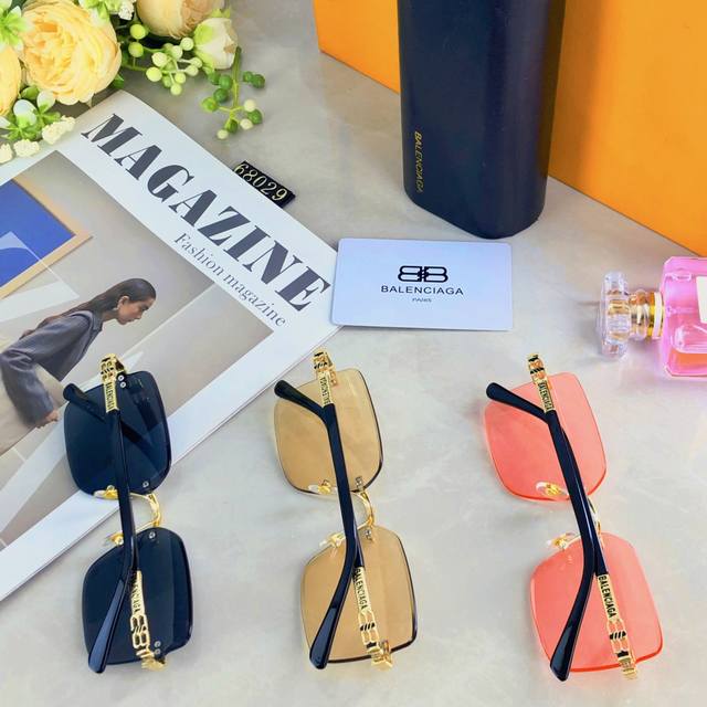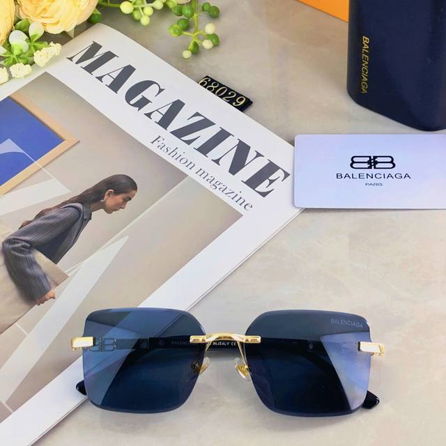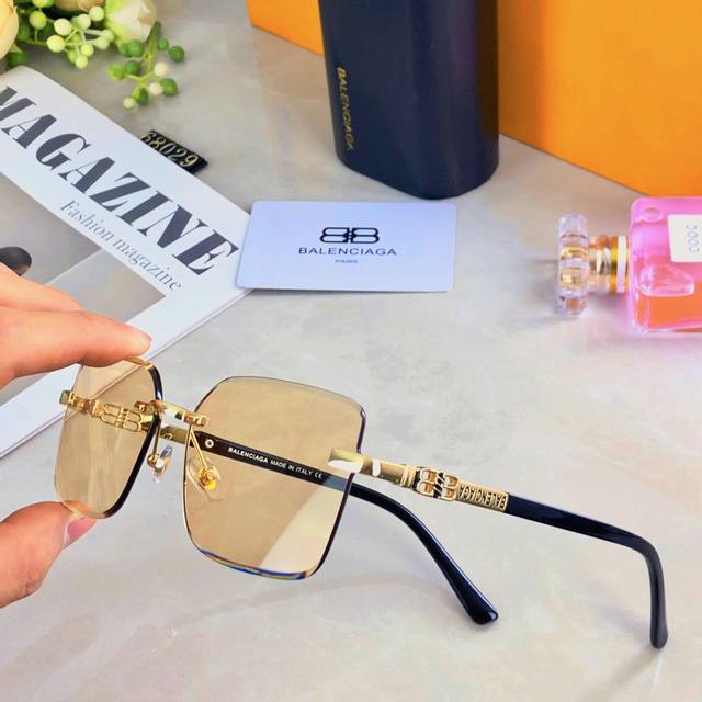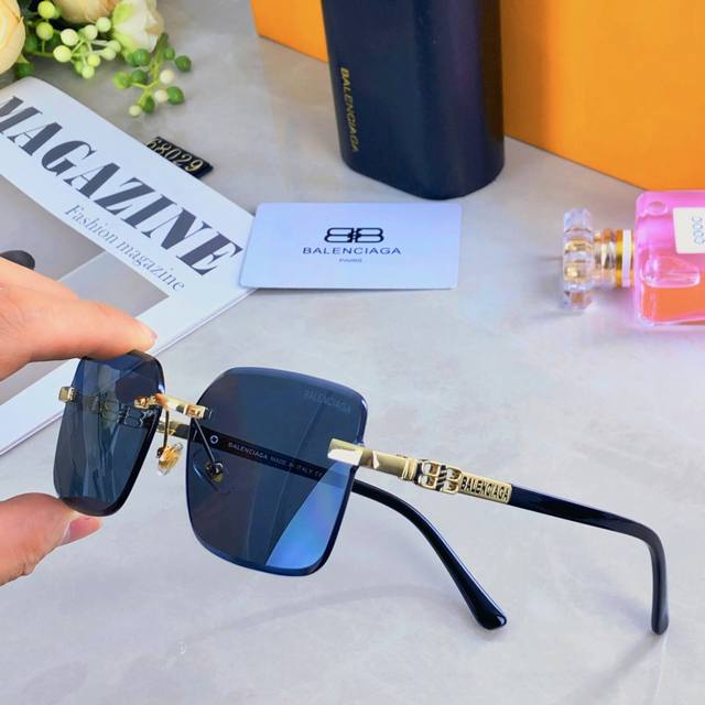 / Balenciag*2025 trendy new frameless trimmed sunglasses high-end sun protection w