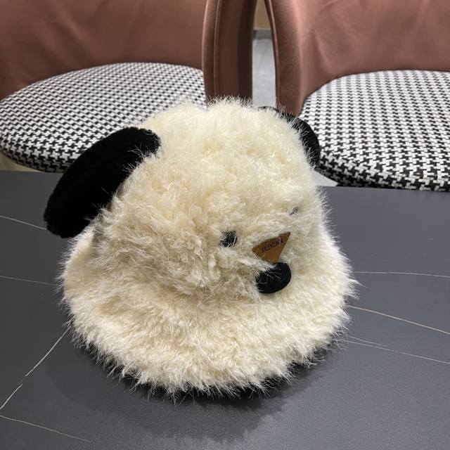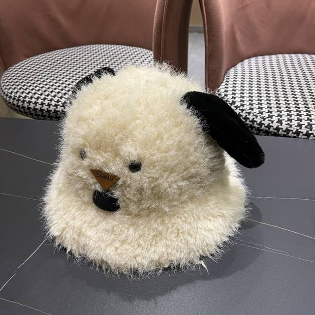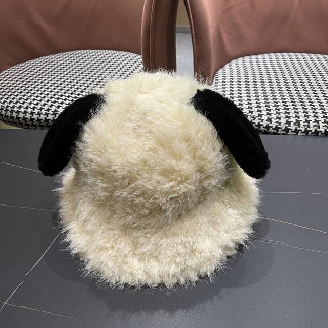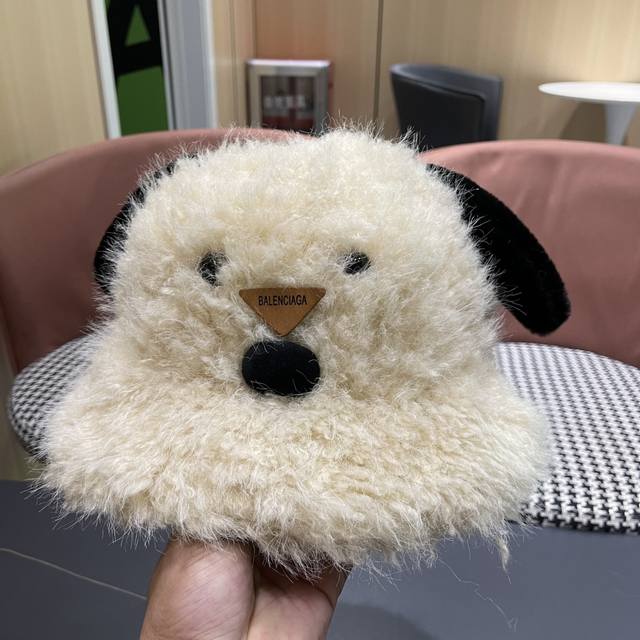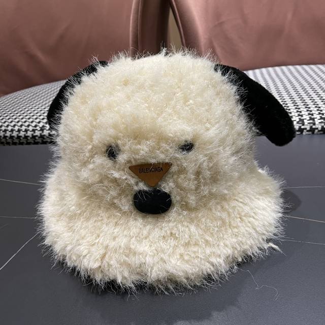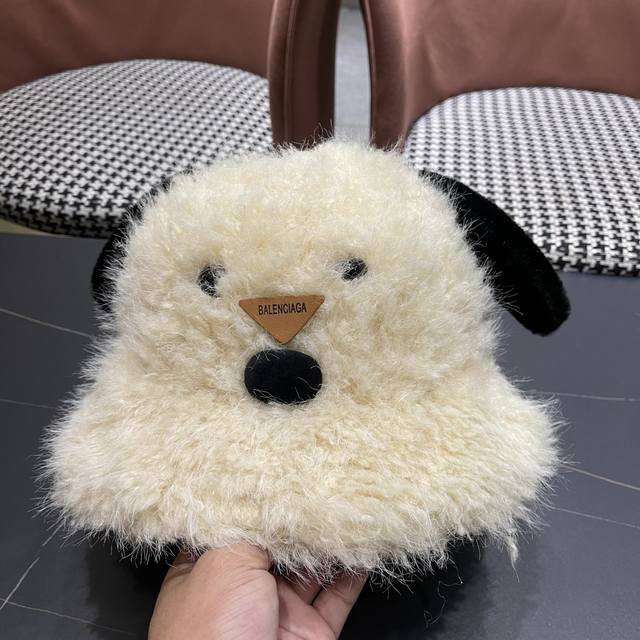 Balenciaga Cute Puppy Ear Plush Fisherman Hat for Women, Winter Korean Style, Fa