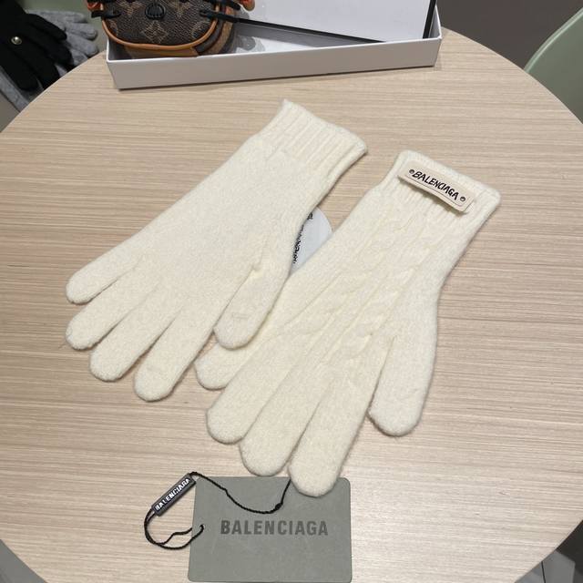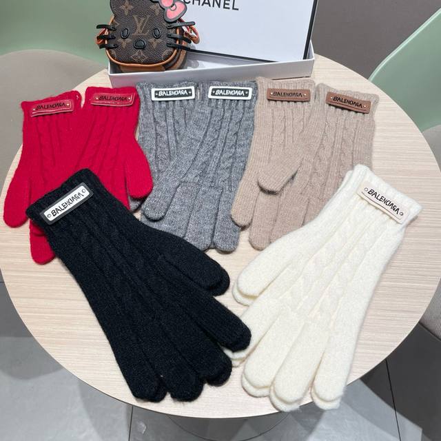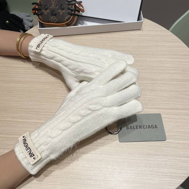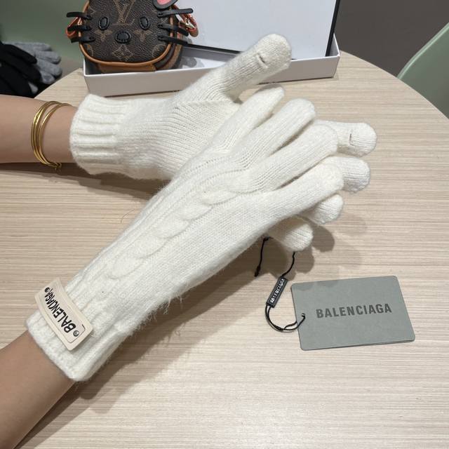 Balenciaga High-Quality Slimming Fingerless Touchscreen Korean Style Ins Cable Knit Wool Gloves Women's Autumn and Winter Warm and Cold-Proof Five-Finger