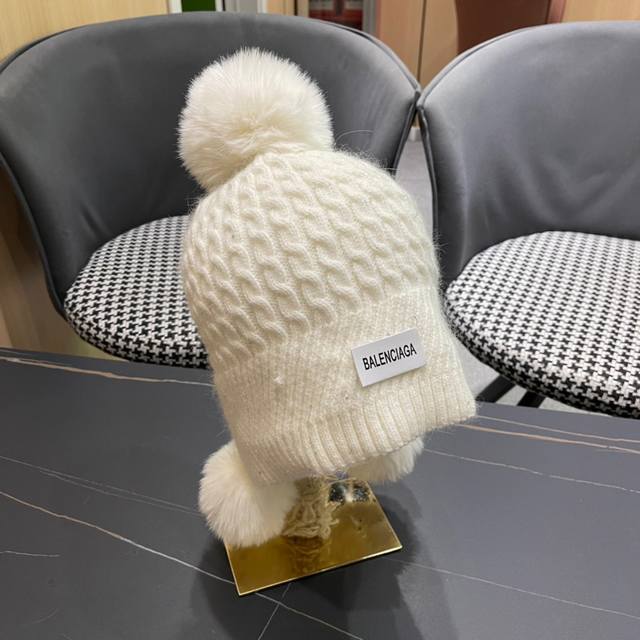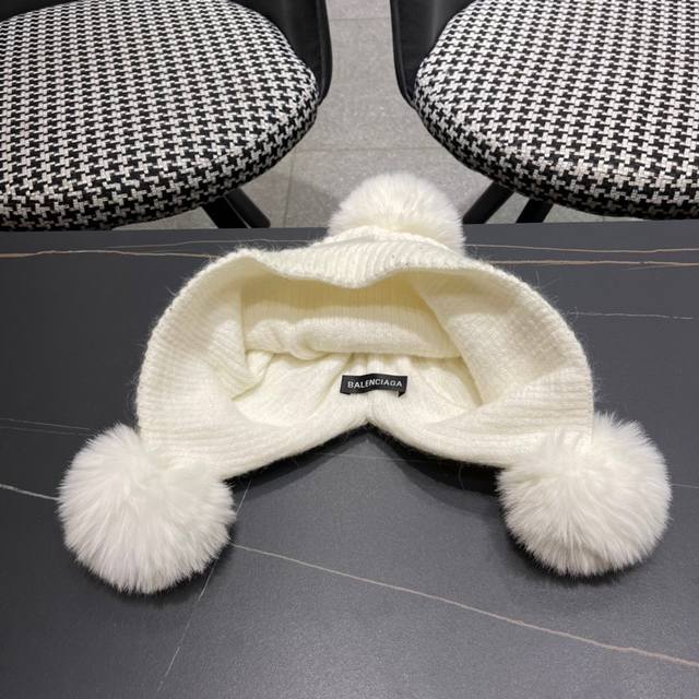 Balenciaga Logo New Rabbit Fur Lei Feng Hat, an essential item for keeping warm in autumn and winter. Simple and warm.
