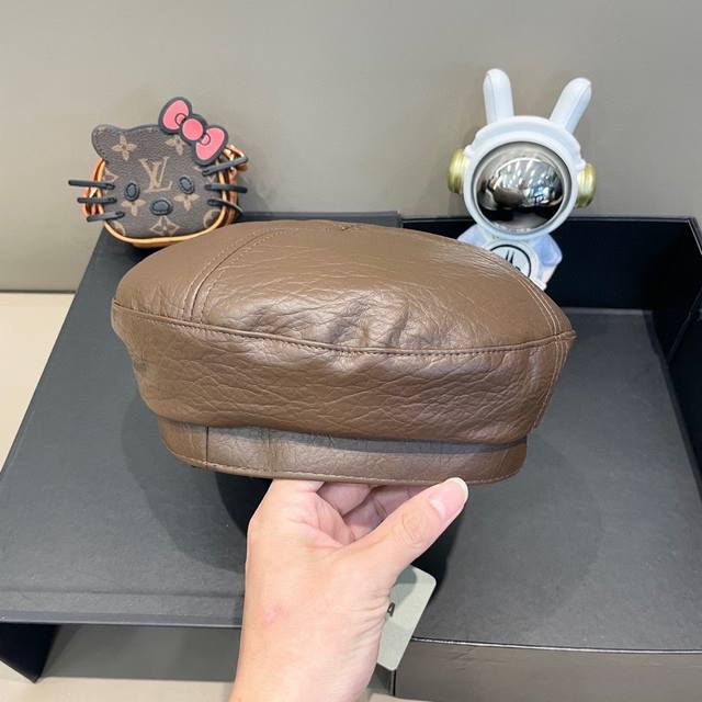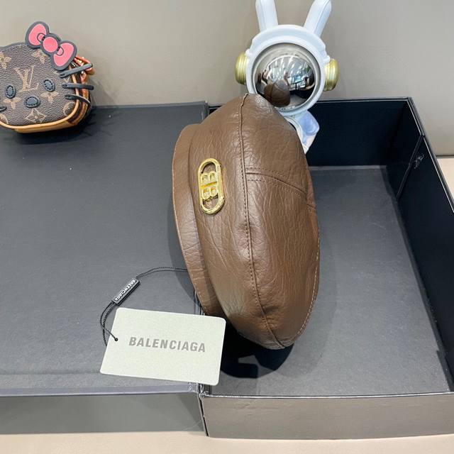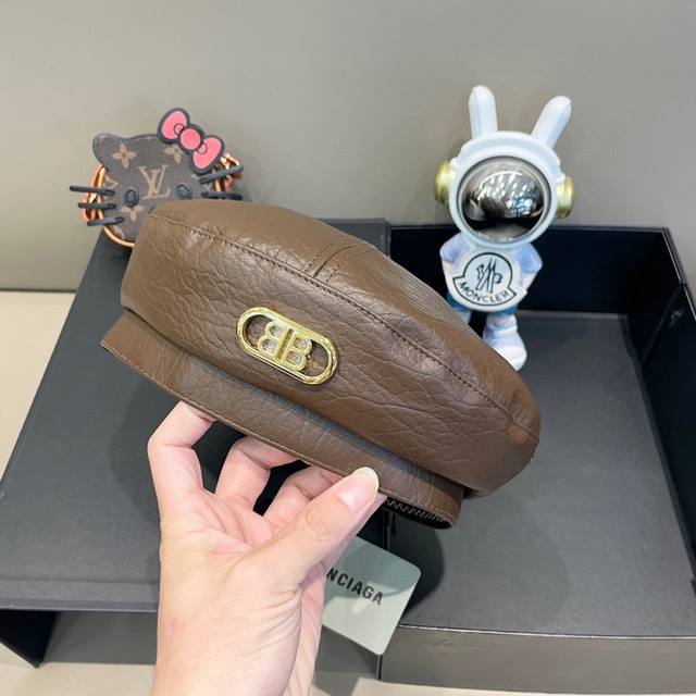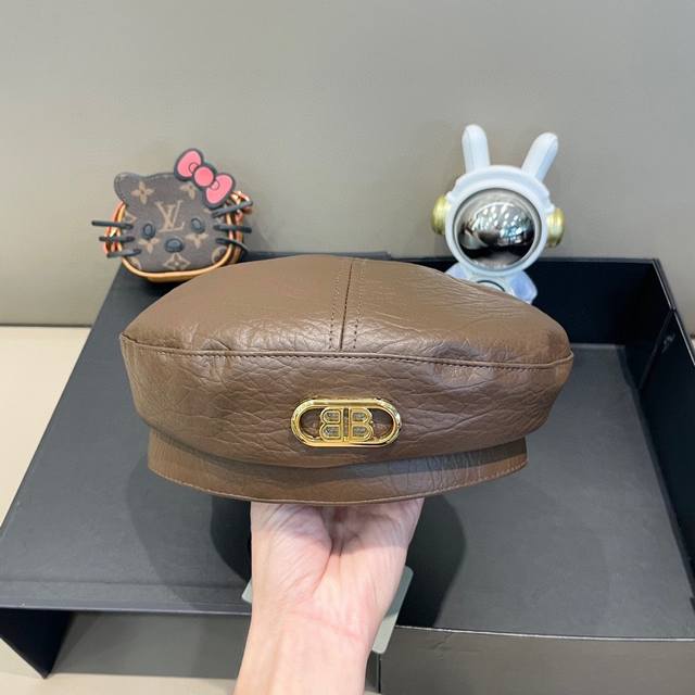 / Balenciaga Paris family new leather beret women's autumn British retro painter h