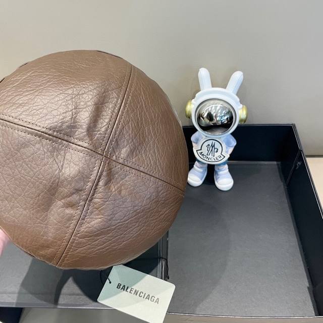 Balenciaga Paris family new leather beret women's autumn British retro painter hat texture leather bud hat trend