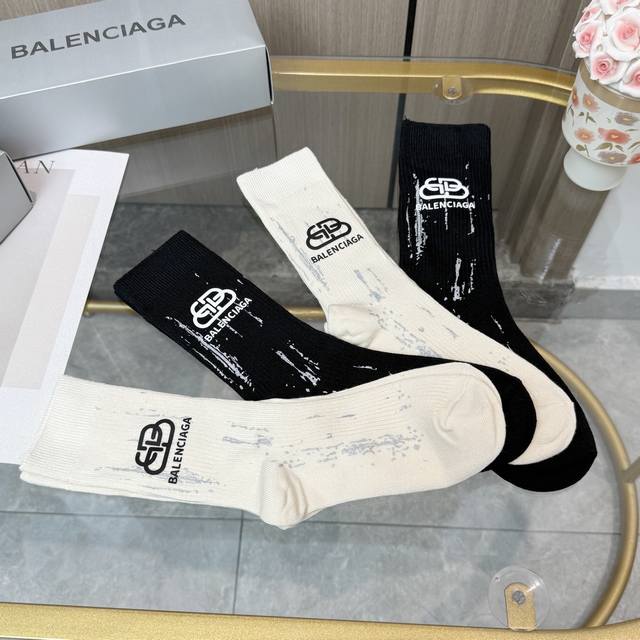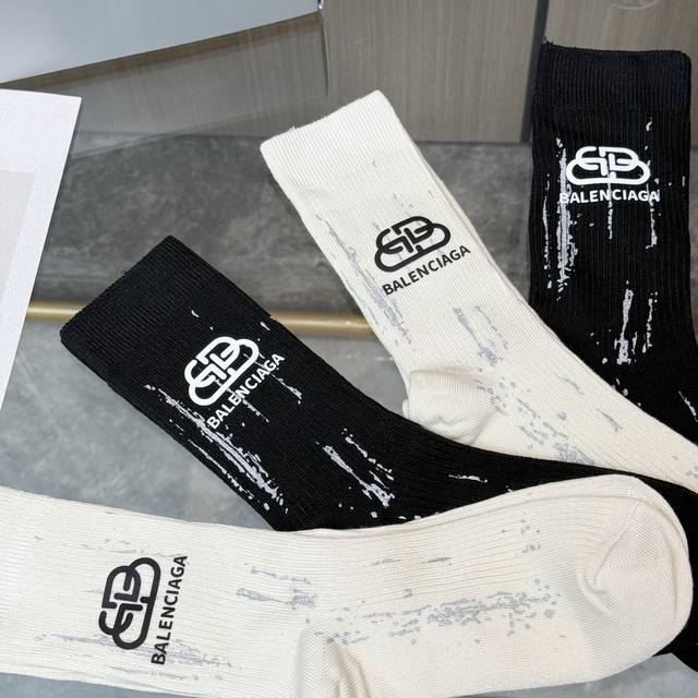 Comes in a box of four pairs of Balenciaga's super popular online celebrity socks. Balenciaga's official website synchronizes silicone letter calf socks, which are extremely popular among Instagram celebrities and online celebrities. Made of pure cotton, they are light, soft and breathable, suitable for all seasons. A must-have for European and American street brands.