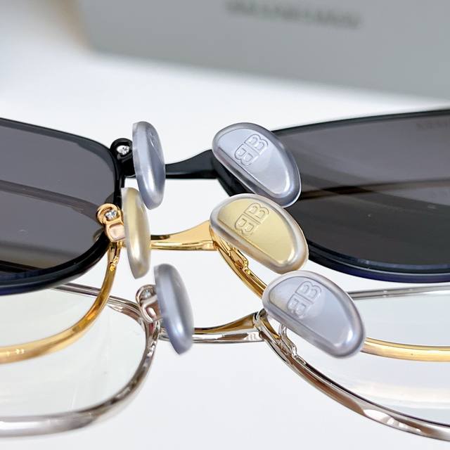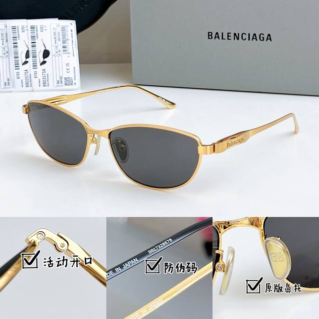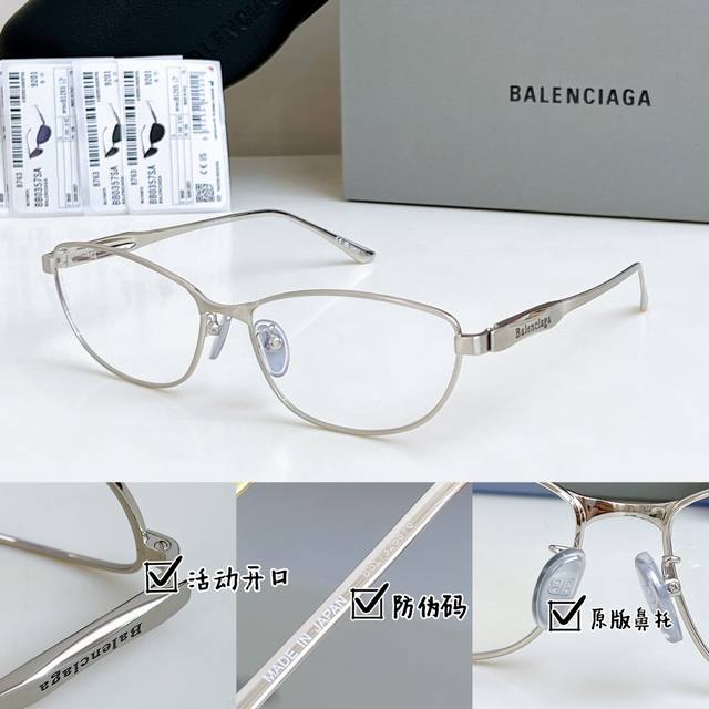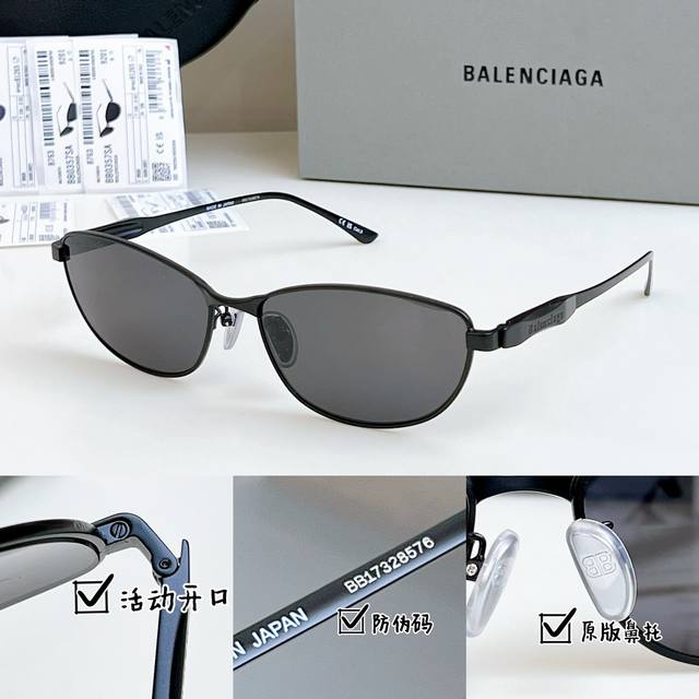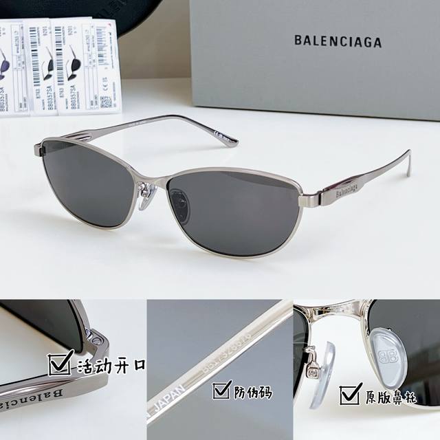 The temples feature an original design with a thick, three-dimensional metal nameplate at the hinge. The engraved and enamel Balenciaga logo adds a touch of sophistication to the metal nameplate.