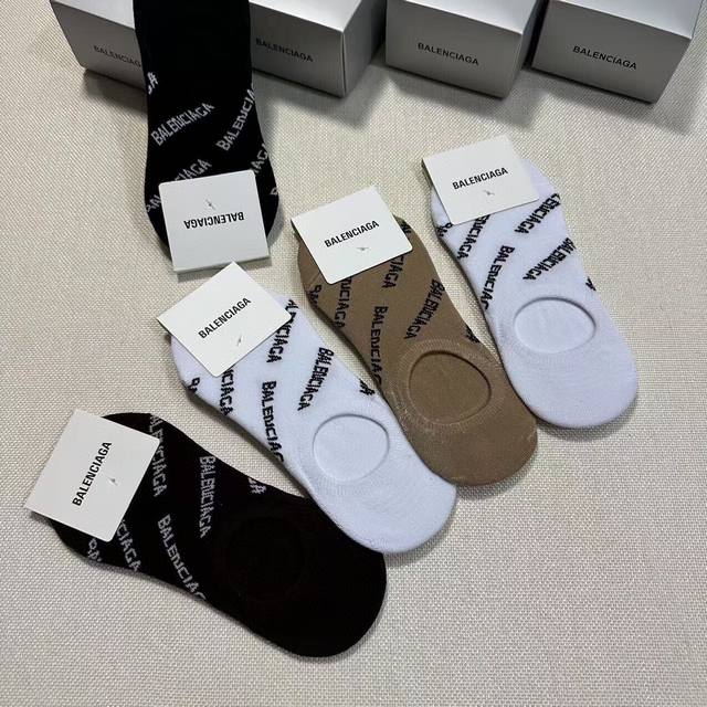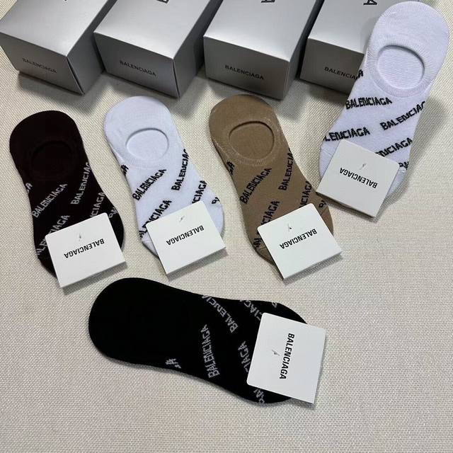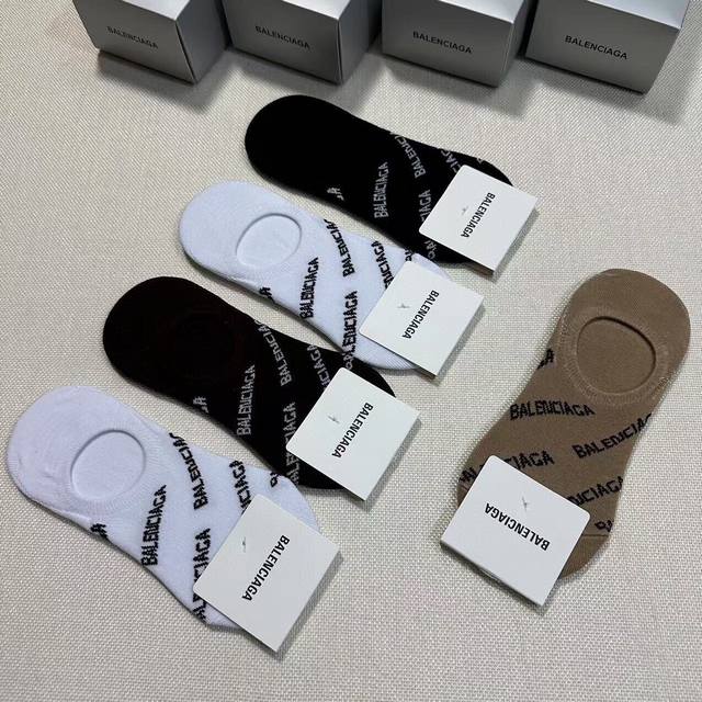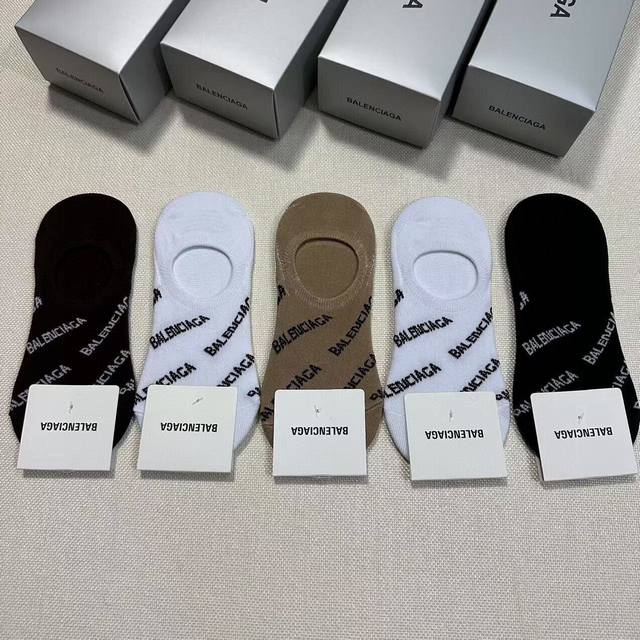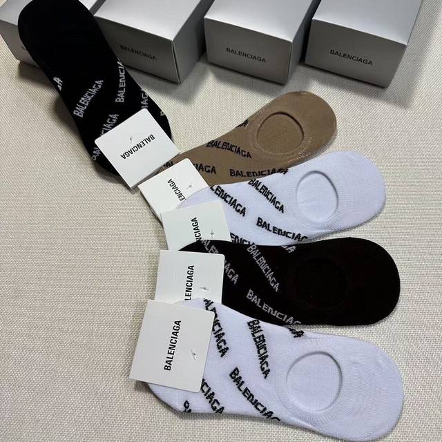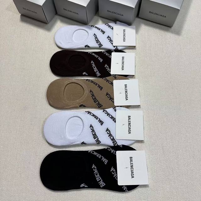 Special Balenciaga Parisian Grand Parisian classic women's invisible socks, one box of five pairs of pure cotton material, soft and comfortable to wear, carefully selected colors with Grand Parisian classic logo, big brand out of the street, fashion must-have, super easy to match