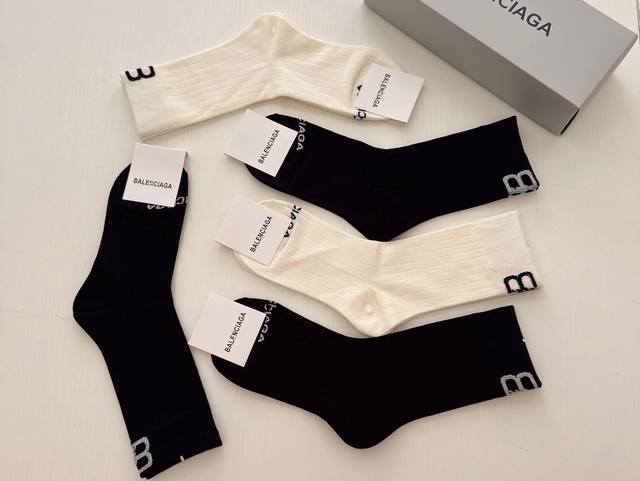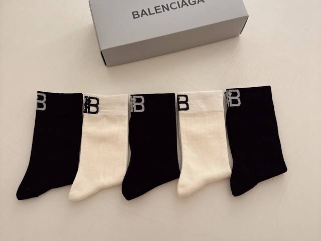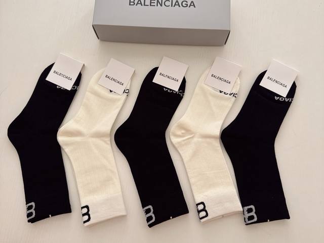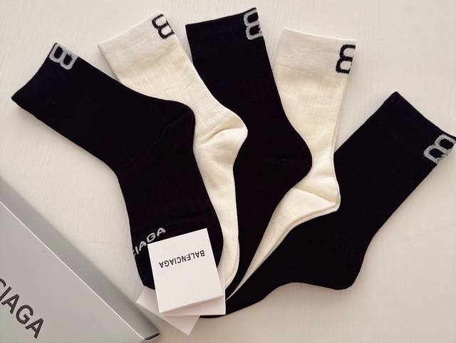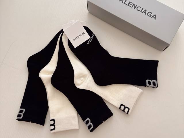 Special Offer: Balenciaga Women's Knee-High Socks (5 pairs per box). Made of pure cotton, soft and comfortable, these socks feature carefully selected colors and the latest Balenciaga logo. A must-have for trendsetters, super easy to match!