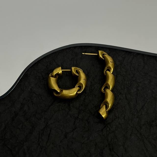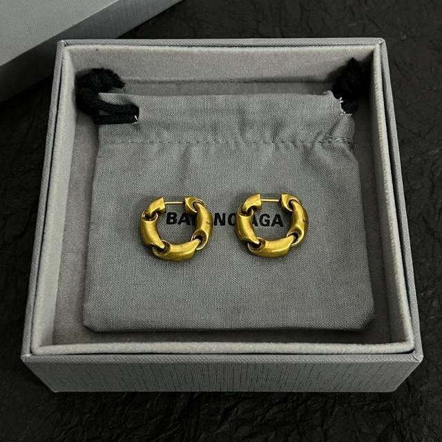 Balenciaga earrings, simple and elegant, with a rich, high-end gold finish, look