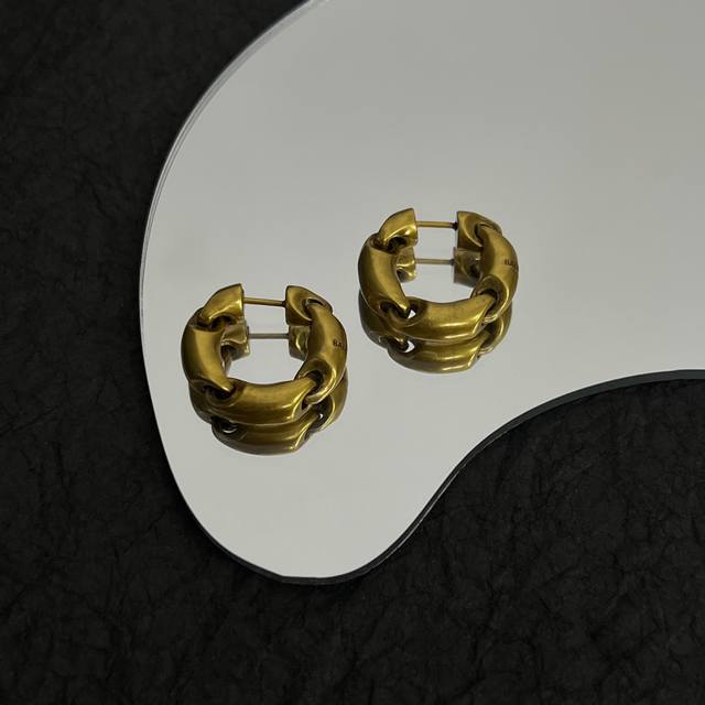 / Balenciaga earrings, simple and elegant, with a rich, high-end gold finish, look