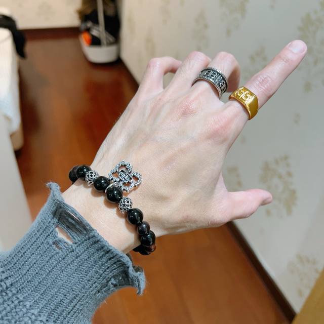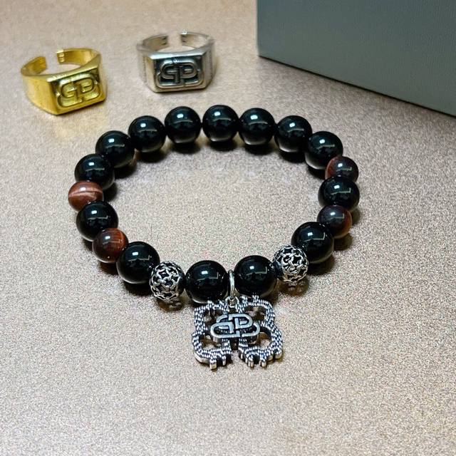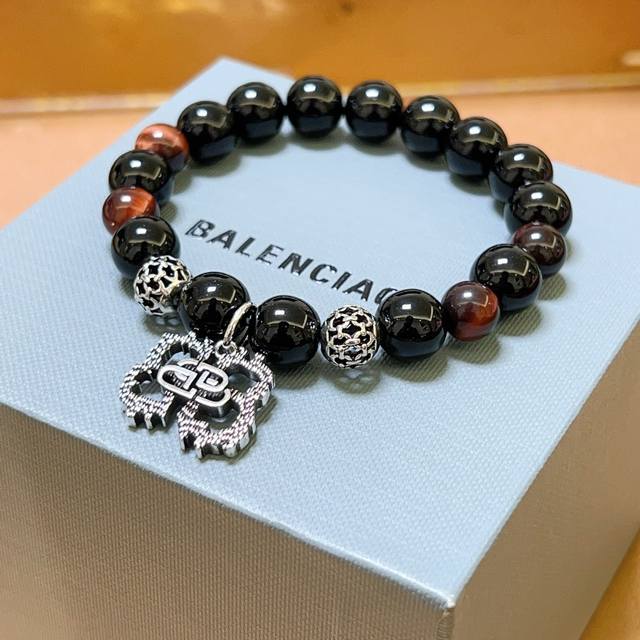 Exquisite craftsmanship version of natural black agate Balenciaga bracelet with tiger eye and Thai silver style. Balenciaga bracelet, celebrity style, unisex, retro distressed style, original replica, handmade. Authentic mold, trendy and fashionable, must-have for men and women, suitable for couples, rock punk style, Thai silver style, retro elements, trendy and versatile. I love it! Please note the size when ordering.