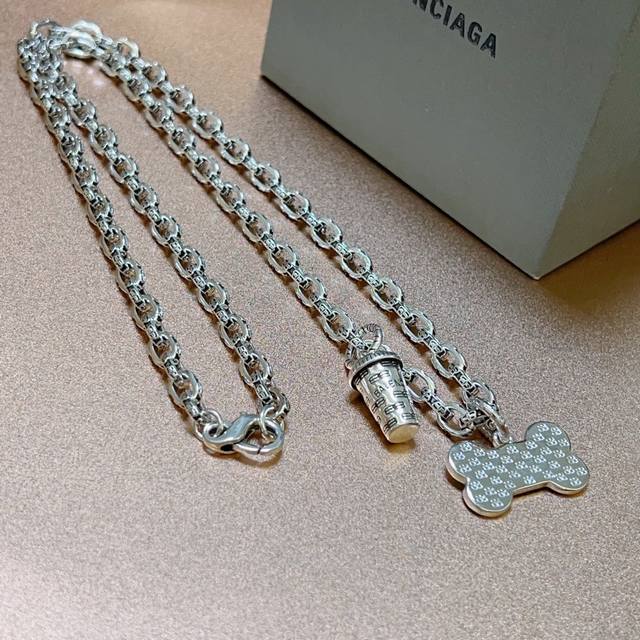 Original Balenciaga Necklace, New Arrival. Exquisite craftsmanship, identical to boutique items, meticulous attention to detail, perfect process, and refined design. A hot-selling item with a unique retro style. Wearing this Balenciaga necklace makes you look like an adorable puppy!
