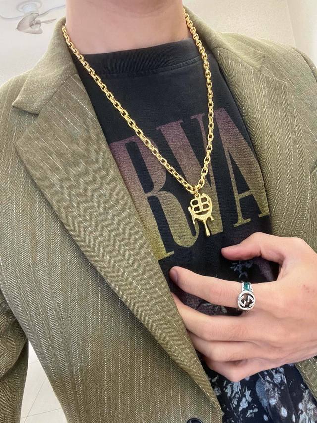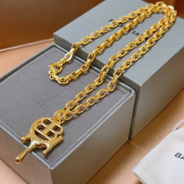 Original Balenciaga Necklace, New Arrival. Exquisite craftsmanship, identical to boutique items, meticulous attention to detail, perfect process, and refined design. A hot-selling item with a unique gold-style Balenciaga necklace. (