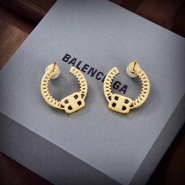 Original Balenciaga new earrings, identical to those in boutiques, made of brass and plated with 18K gold. Hot selling item, unique and avant-garde design, a must-have for beautiful women.
