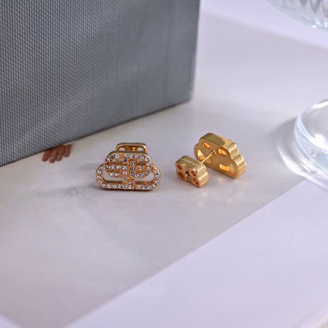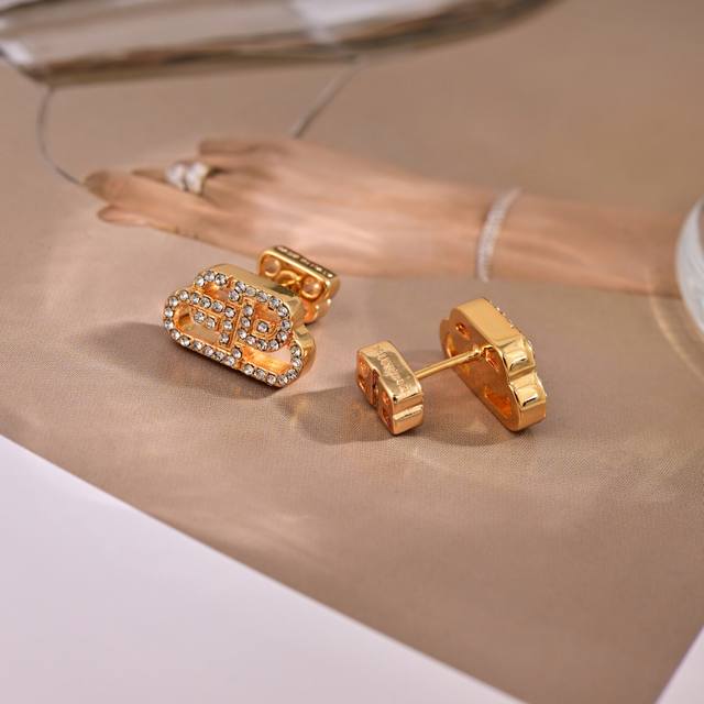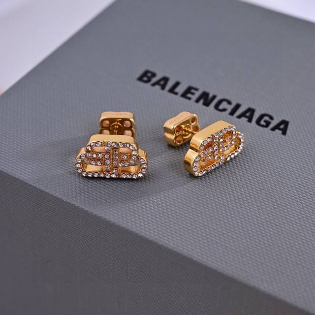 Original Balenciaga new earrings, identical to those in boutiques, made of brass and plated with 18K gold. Hot selling item, unique and avant-garde design, a must-have for beautiful women.