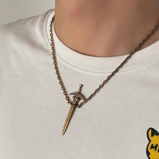 Original Balenciaga new necklace, identical to boutique items, made of brass plated with 18K gold, a hot -selling item with a unique and avant-garde design, a must-have for beautiful women.